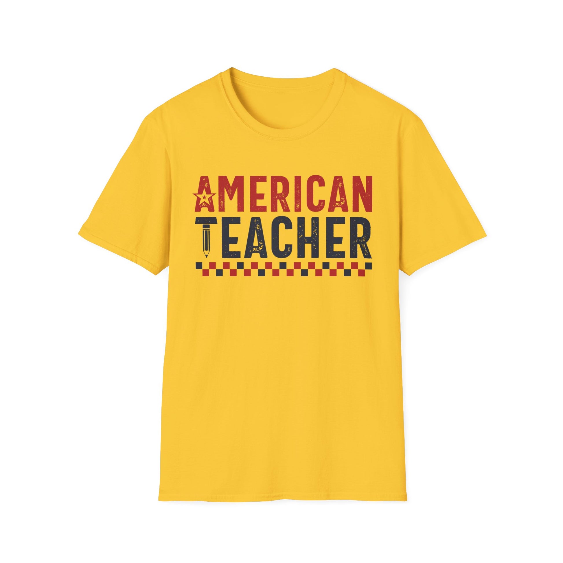 Our American Teacher Patriotic T-Shirt, is the perfect blend of comfort and style, designed for those dedicated educators who want to showcase their profession with pride. The short-sleeve tee exudes a casual and relaxed vibe, making it ideal for everyday wear or as a thoughtful gift for teachers' appreciation week or the end of the school year. The unisex fit and soft fabric ensure a comfortable and flattering look for any wearer