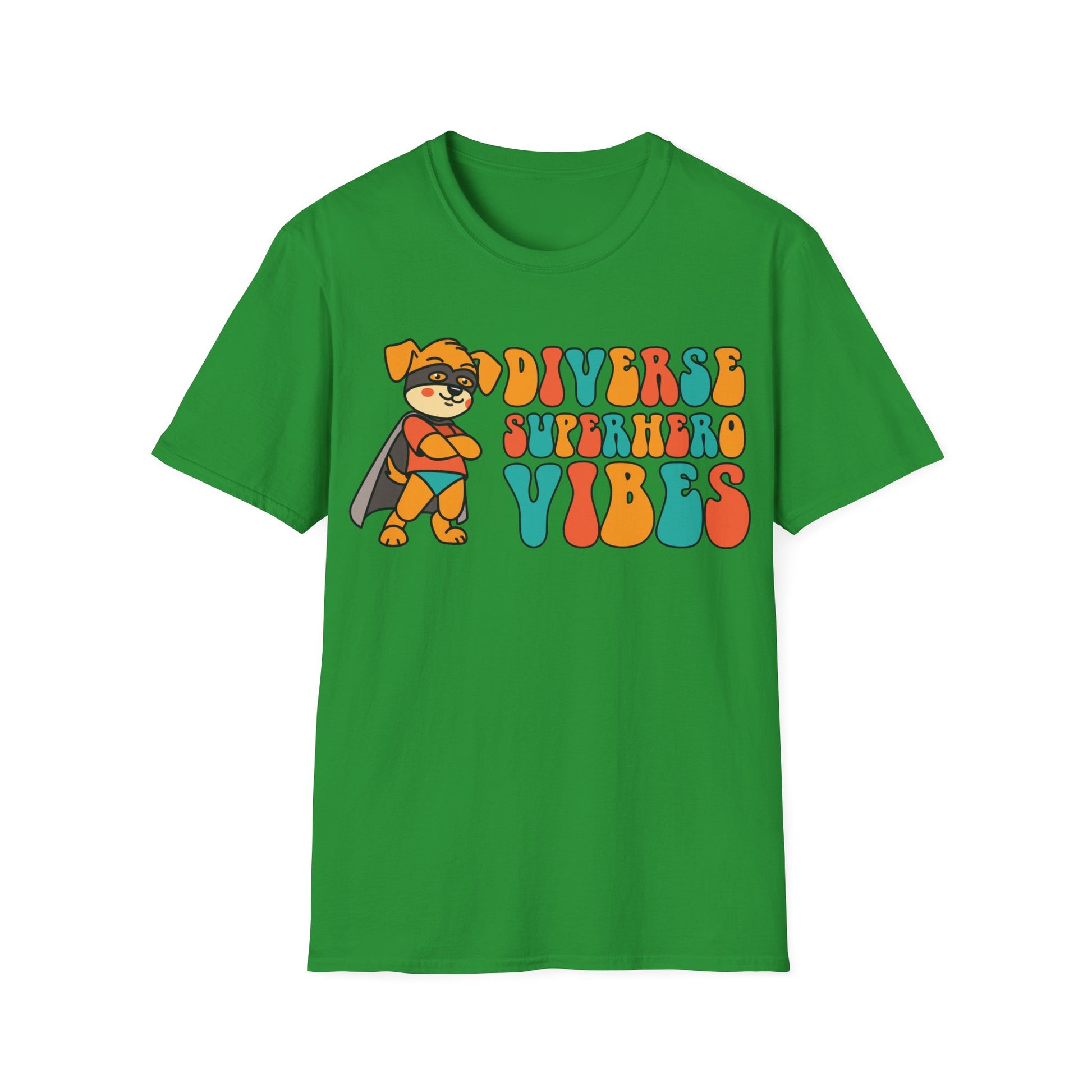 Diverse Superhero Vibes - Celebrating Neurodiversity + Inclusion - T-Shirt is the perfect blend of comfort and style, designed for those dedicated educators who want to showcase their profession with pride. The short-sleeve tee exudes a casual and relaxed vibe, making it ideal for everyday wear or as a thoughtful gift for teachers' appreciation week or the end of the school year. The unisex fit and soft fabric ensure a comfortable and flattering look for any wearer
