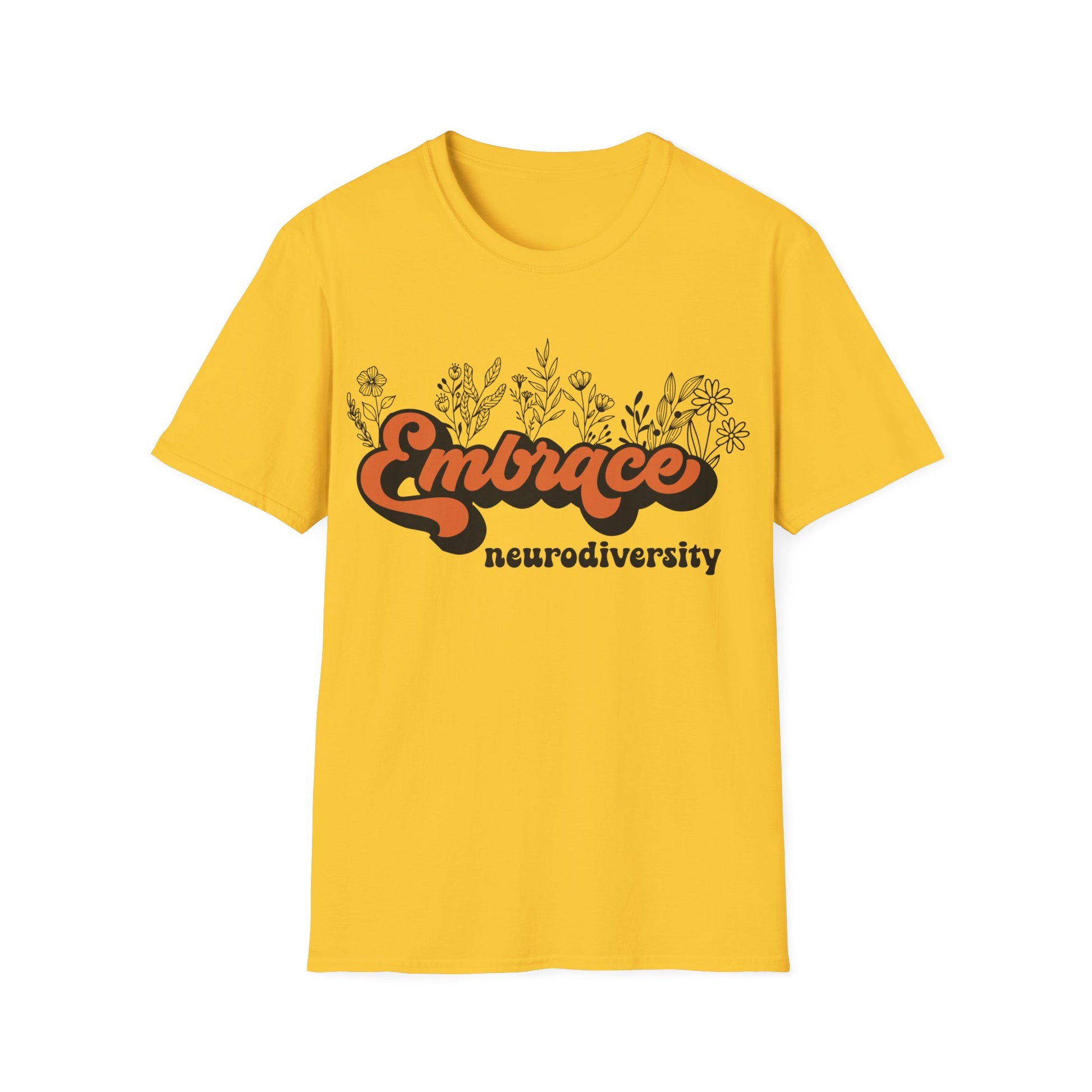 Embrace Diversity Orange Graphic - Celebrating Neurodiversity + Inclusion - T-Shirt