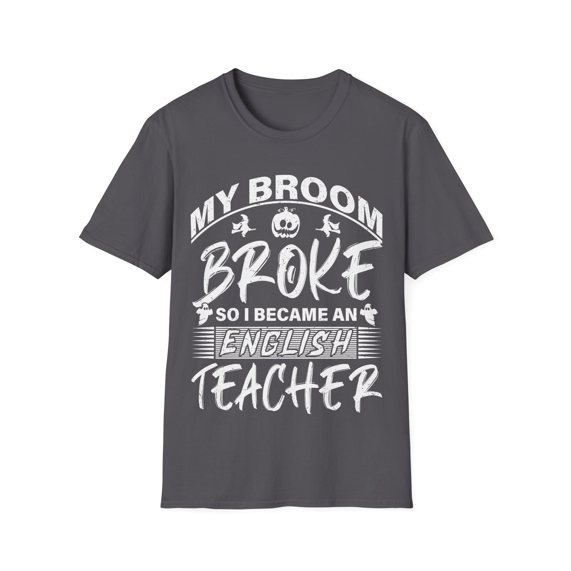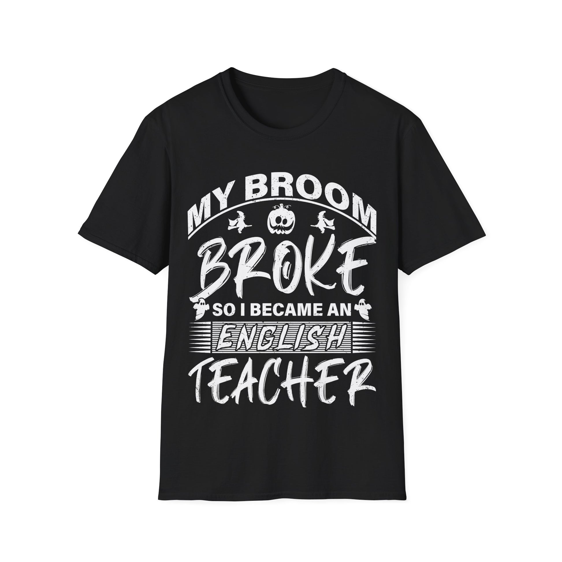 Funny English Teacher Halloween Shirt – My Broom Broke So I Became a Teacher T-Shirt