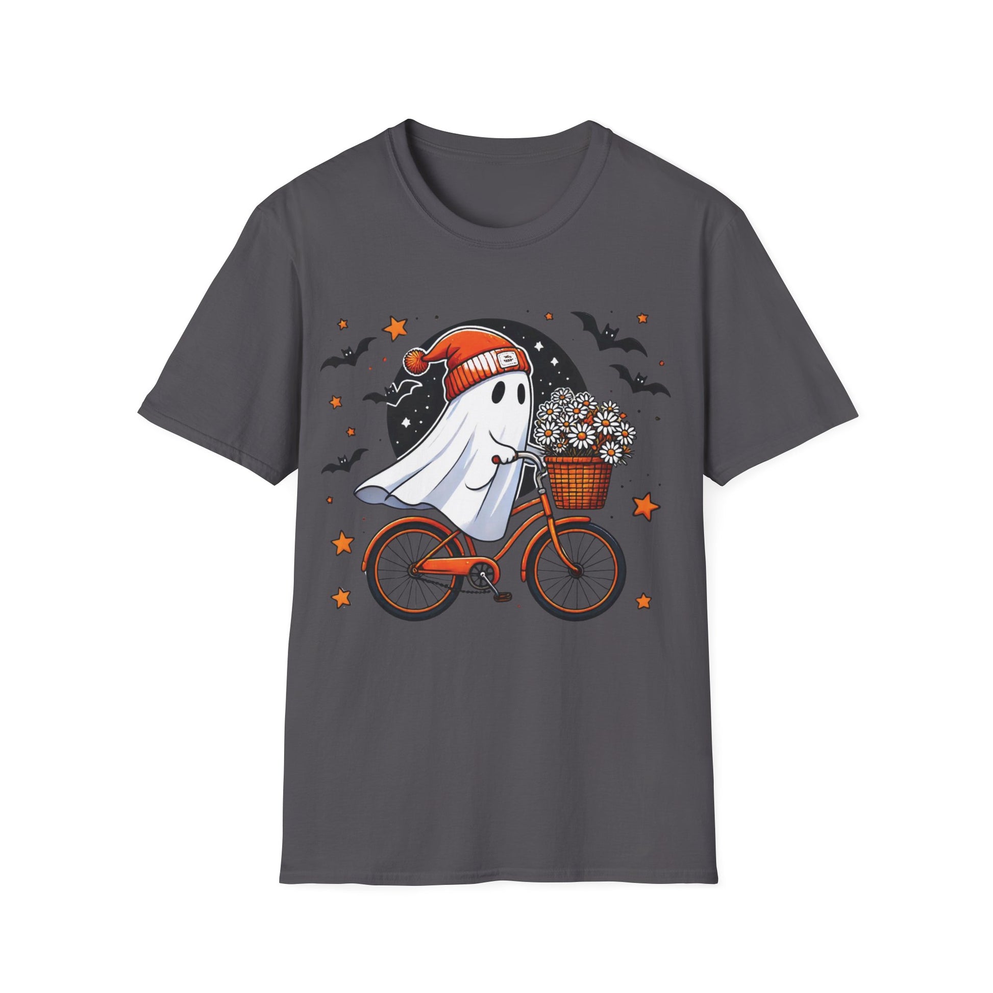 Ghost on Bicycle Halloween T-Shirt | Cute Spooky Bike Ride Graphic Tee
